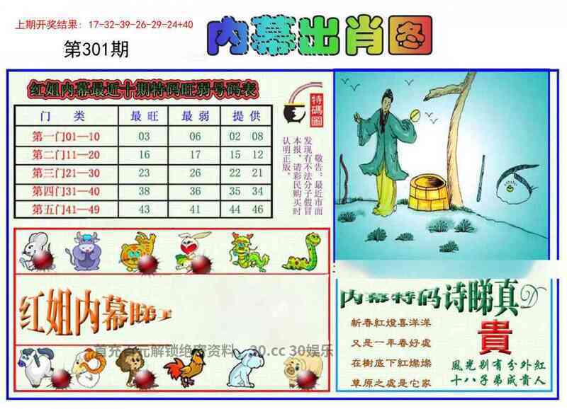 303期:天地两肖天肖+鸡鼠】开:兔15准